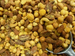 Onze befaamde Huismix, Vers Gebrand, Cashewnoten, Pecan, Macadamia`s, Cranberry`s en Geroosterde Tuinbonen met Sojasaus